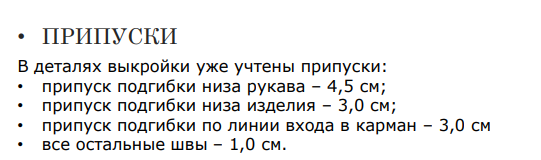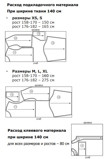 • Термоклеевой прокладочный материал (см. раскладка и расход материала)