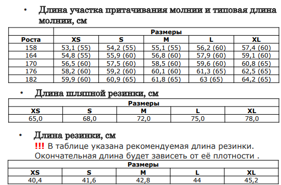 • Разъёмная тесьма-молния длиной– 1 шт. (рекомендуемую длину для каждого размера см. ниже)