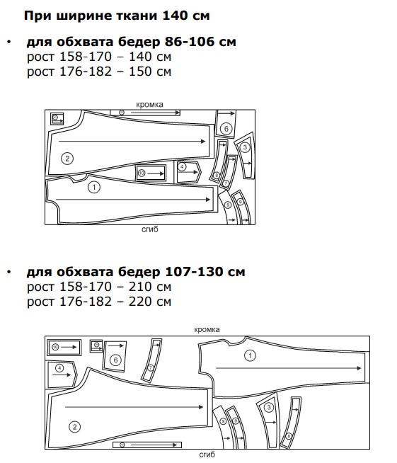 • Основная ткань (см. раскладка и расход материала)